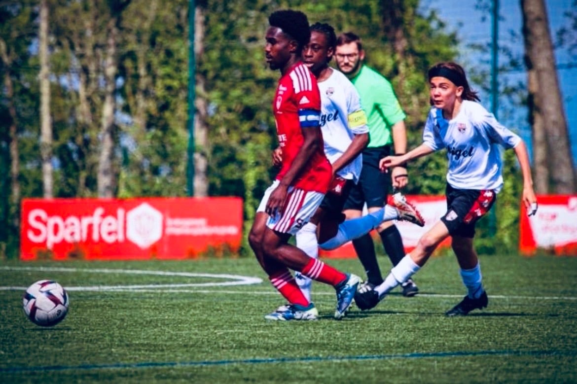 Joachim Akale – Attaquant : énergique, prend des initiatives, vrai danger pour Brest en première période.